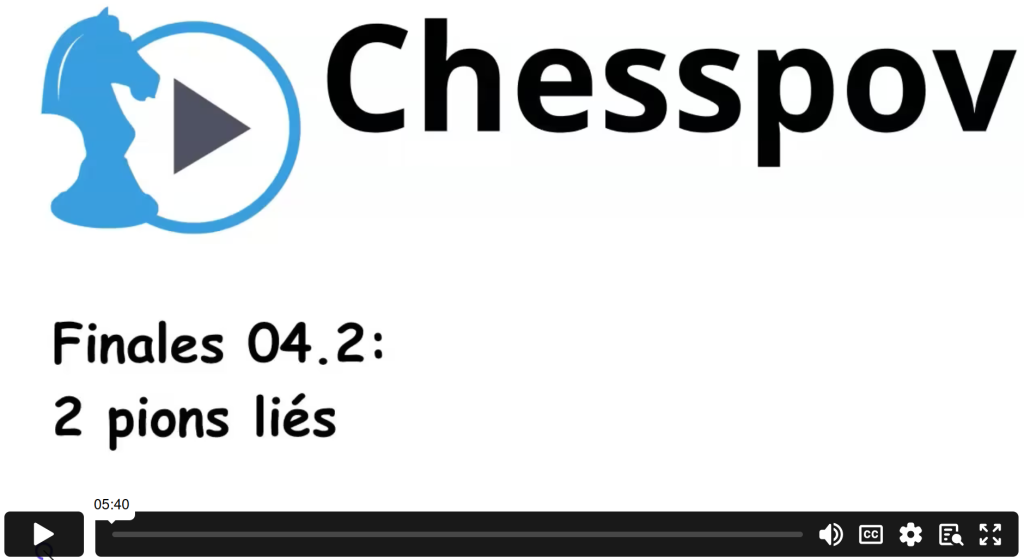 Dans ce cours d’échecs en vidéo, nous allons voir comment deux pions liés s’ auto protègent l’un l’autre pour, soit pouvoir avancer, soit pouvoir attendre le soutien de leur Roi pour avancer.